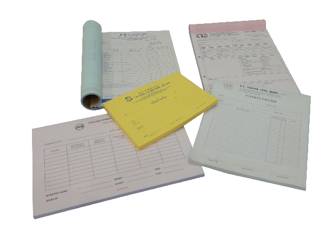 | Size ► A4 : 210mm x 297mm / 8.26" x 11.7" ► A5 : 148mm x 210mm / 5.8" x 8.26" ► Custom sizes Printing ► 1 color / 2 colors / 3 colors / 4 colors (Full colors) ► Additional Special color ► 1 side / 2 sides Materials ► Simili Paper : 80gsm, 100gsm, 120gsm, 140gsm ► NCR Paper ► Bond Paper ► Other Materials Extent ► 1ply, 2ply, 3ply, 4ply, 5ply, etc Finishing ► Top Glue Padding (Top Pad) ► Side Glue Padding (Book Form) ► Perforation line ► Numbering ► Copy Change ► Punch Hole ► Others Binding ► Stapler Bind ► Perfect Bind ► Wire-O ► Thread Sewn ► Others |