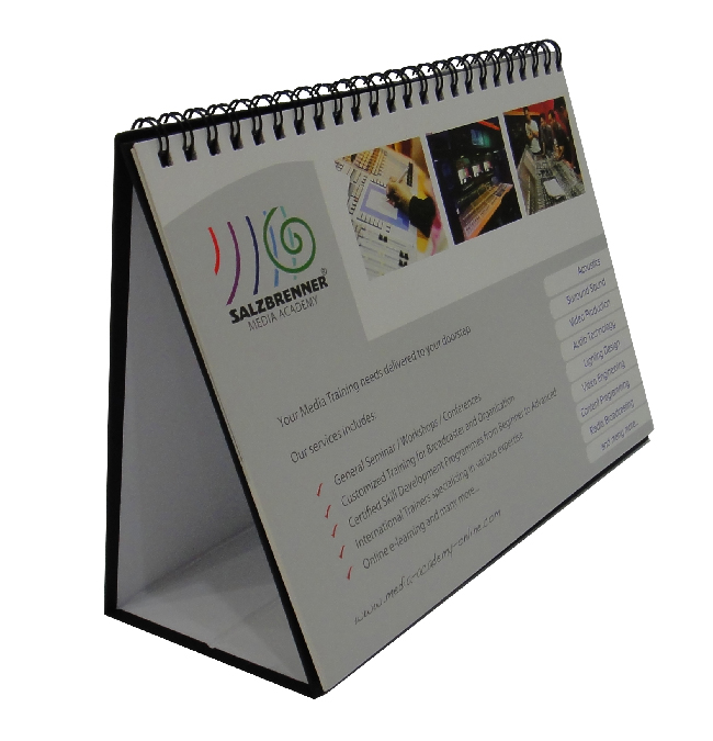 | Size ► 6" x 9" (Desktop Calender) ► 7" x 6" (Desktop Calender) ► 8" x 41/2" (Desktop Calender) ► Custom Made Sizes Printing ► 1 color / 2 colors / 3 colors / 4 colors (Full colors) ► Additional Special color ► 1 side / 2 sides ► Custom sizes Calender Material ► Desktop Calender : 128gsm art paper, 157gsm art paper, 230gsm art card, 260gsm art card, 300gsm art card, 350gsm art card ► Wall Calender : 128gsm art paper, 157gsm art paper, 230gsm art card, 260gsm art card, 300gsm art card, 350gsm art card ► Pocket Calender : 210gsm art paper, 230gsm art card, 260gsm art card, 300gsm art card, 350gsm art card ► Other Materials Standee Material ► Art Card : 300gsm, 350gsm, 400gsm ► Hardboard Linmaster ► Other Materials Finishing ► UV Varnish ► Machine Varnish ► Water Base ► Gloss Laminate ► Matt Laminate ► Matt Laminate + Spot UV ► Hotstamping (Silver, Gold, Red, etc) ► Embossing ► Die Cutting ► Gluing ► Others Optional Finishing ► Wire-O ► Stapler ► Metal Grip ► Others |